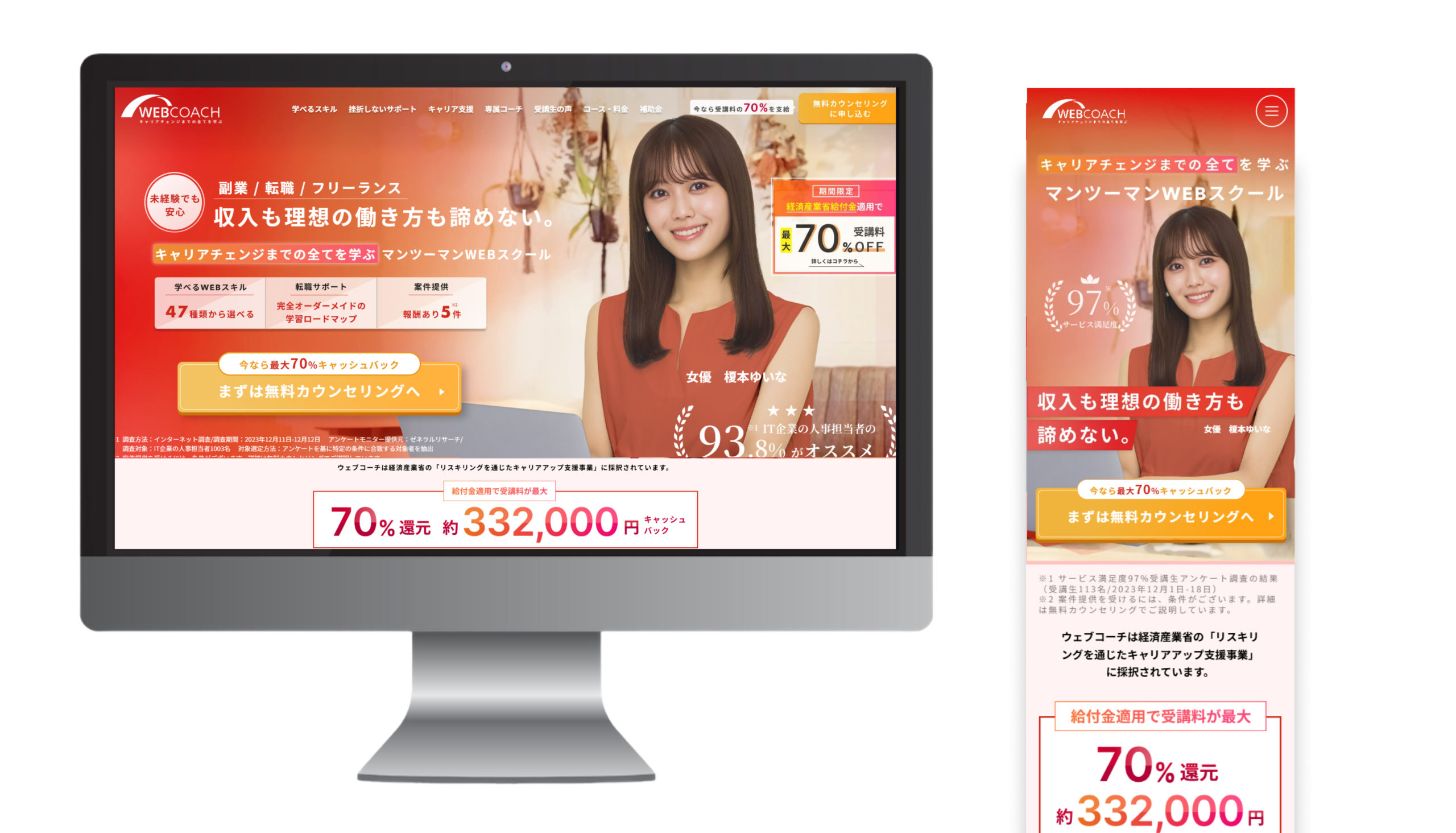 WEBCOACH は、 キャリアチェンジまでの全て を学び理想の”収入と働き方”、どちらも叶えるためのマンツーマンWEBスクール です